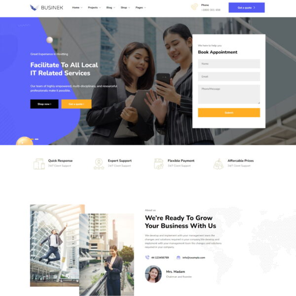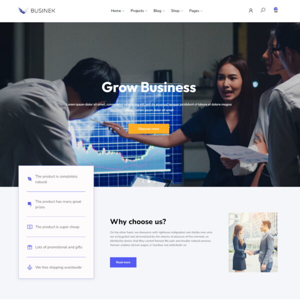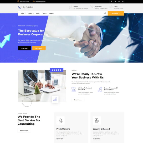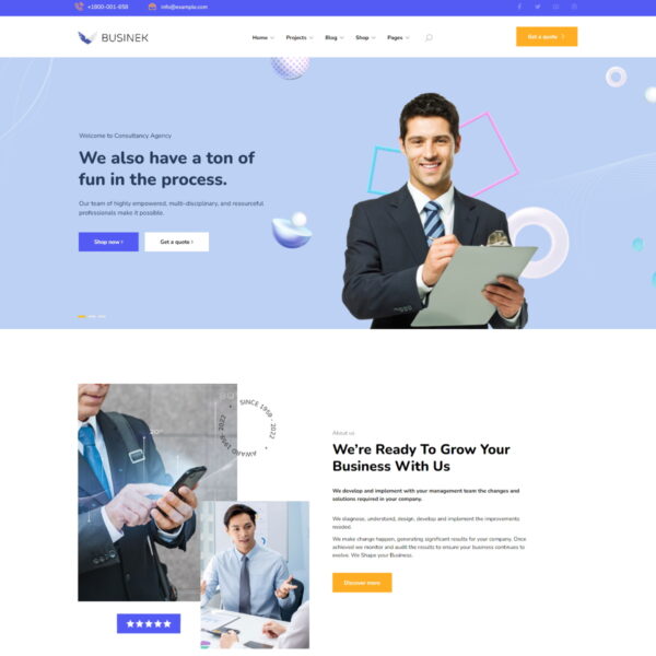 Businek is a new product by THTHEME. It’s perfect with individuals and businesses, providing services for customers, introducing businesses, companies, portfolios, projects… The product comes with 10 home page layouts and necessary inner pages from a professional designer. Businek has built-in Portfolio post type, works independently and widgets display portfolios in grid and slider. Professional e-commerce features are also available with this product. Businek uses Elementor page builder and THTHEME framework, you can easily control everything in your website. Cross-device customization is also an important function. And there’s so much more to it than that. Buy and feel the wonderful things Businek can do for you.